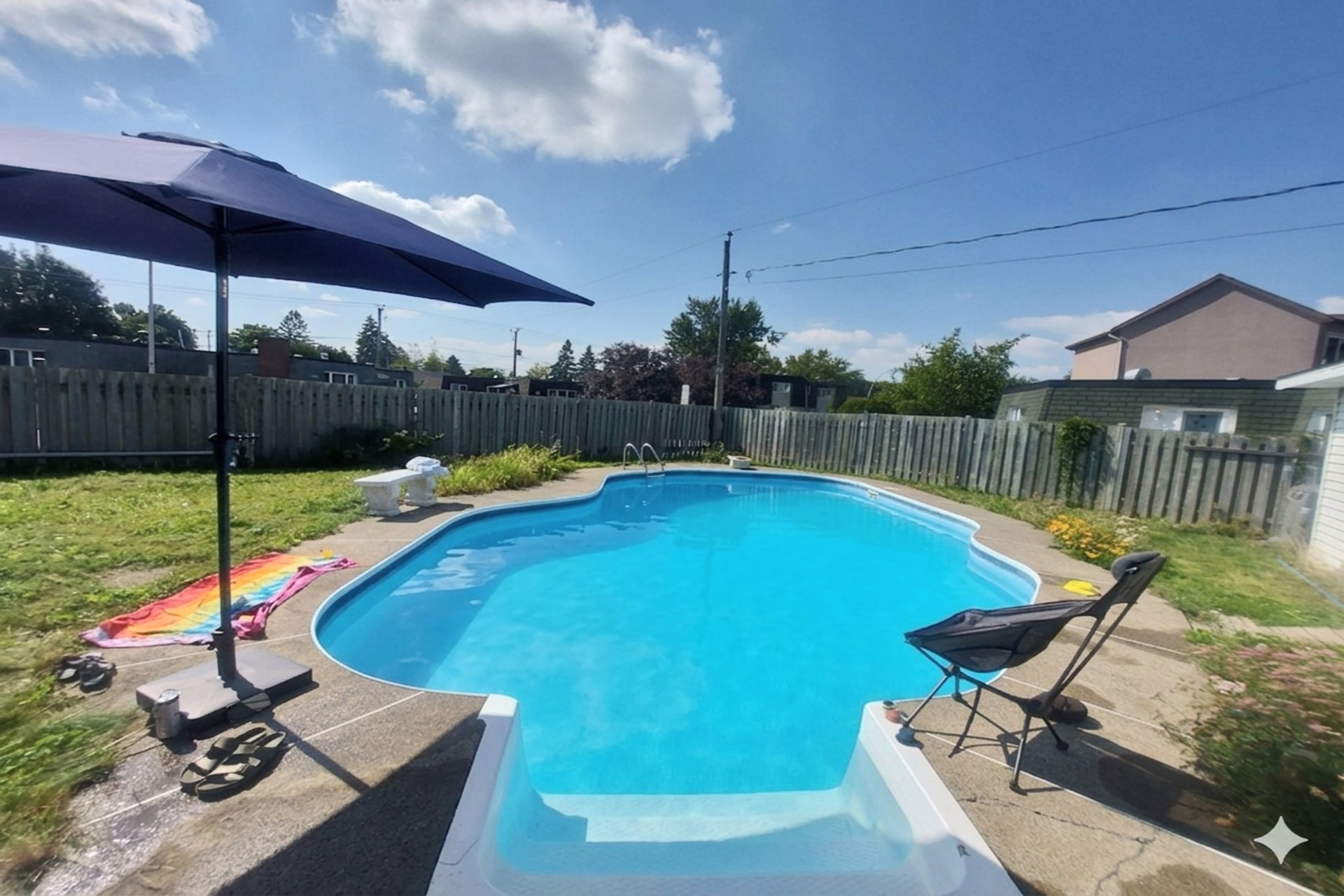 À l'extérieur, profitez d'une cour intime soigneusement aménagée, dotée d'une piscine creusée et chauffée, parfaite pour les journées estivales. Idéalement située à proximité de tous les services essentiels : garderies, écoles primaires et secondaires, hôpital, parcs, pharmacies et plus encore.
