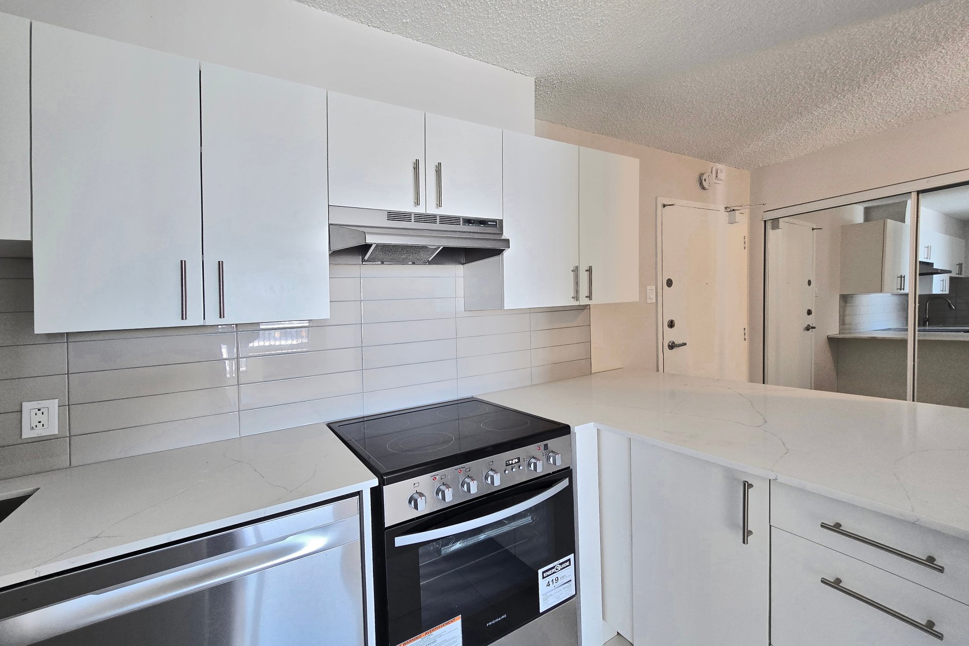 Appartement 4½ à louer, entièrement rénové, disponible immédiatement, tout inclus. Il comprend deux chambres fermées, un salon spacieux et lumineux, une cuisine moderne rénovée ainsi qu'une salle de bain complète. Situé dans un emplacement idéal à Saint-Laurent, à proximité de tous les services, commerces, restaurants et transports en commun, le tout à distance de marche. Le chauffage, l'électricité, l'eau chaude ainsi que les électroménagers sont inclus. L'appartement est situé dans un immeuble insonorisé en béton avec ascenseur, offrant confort, tranquillité et sécurité. Disponible dès maintenant.
