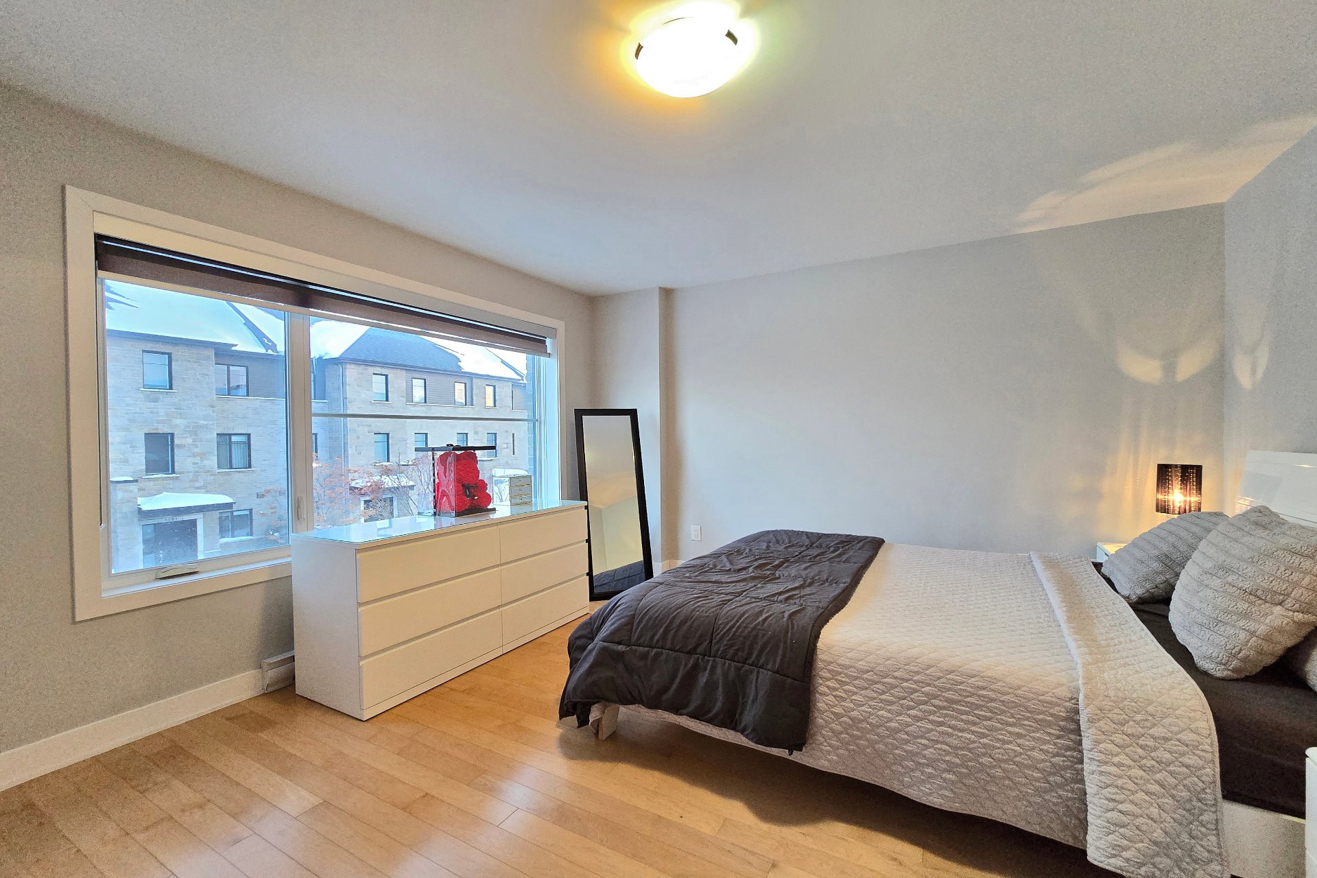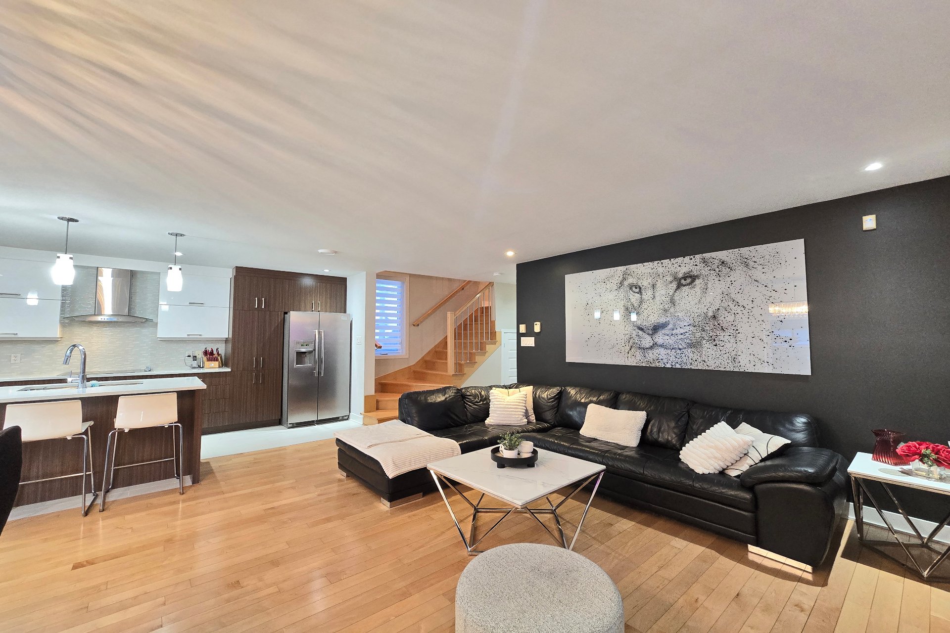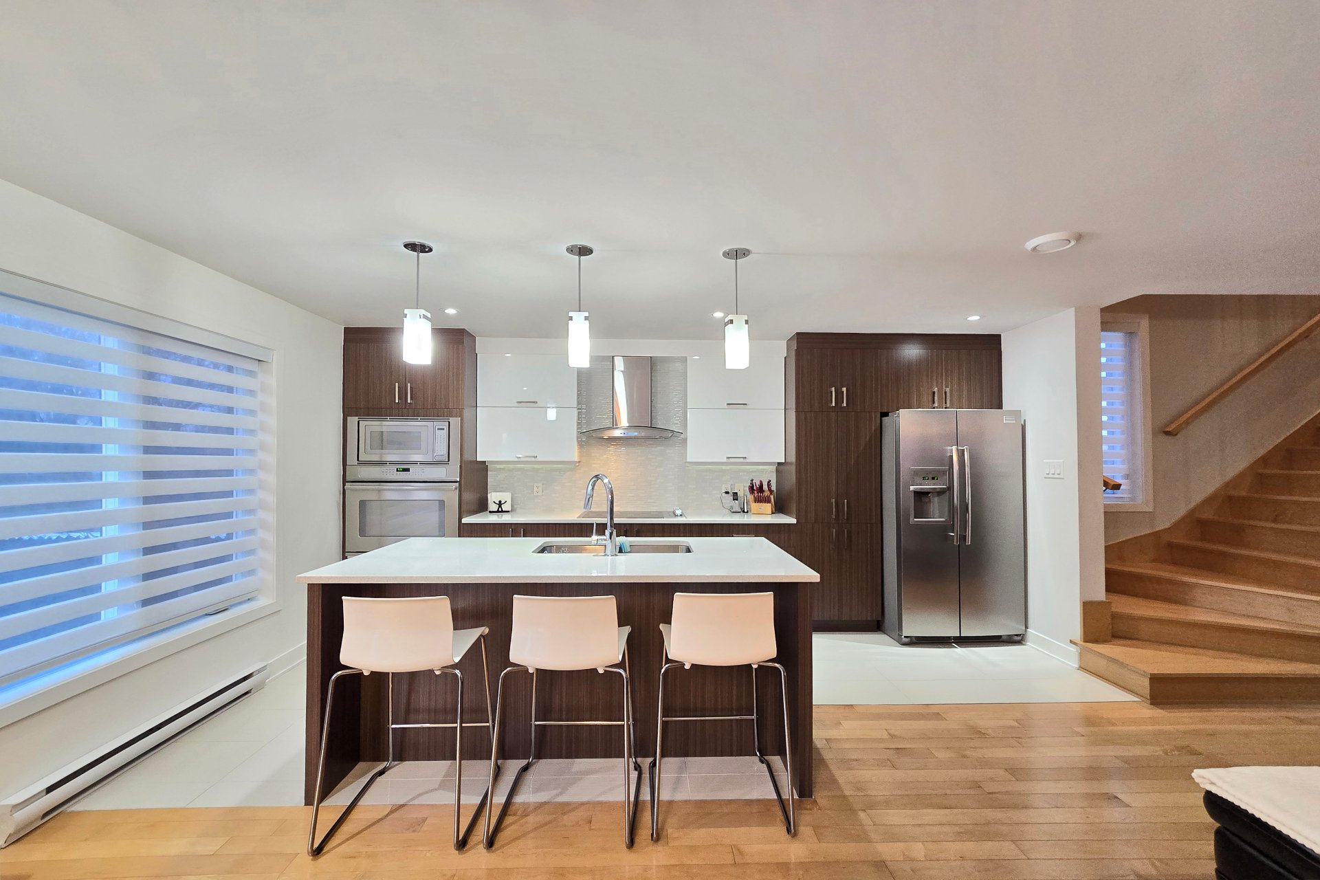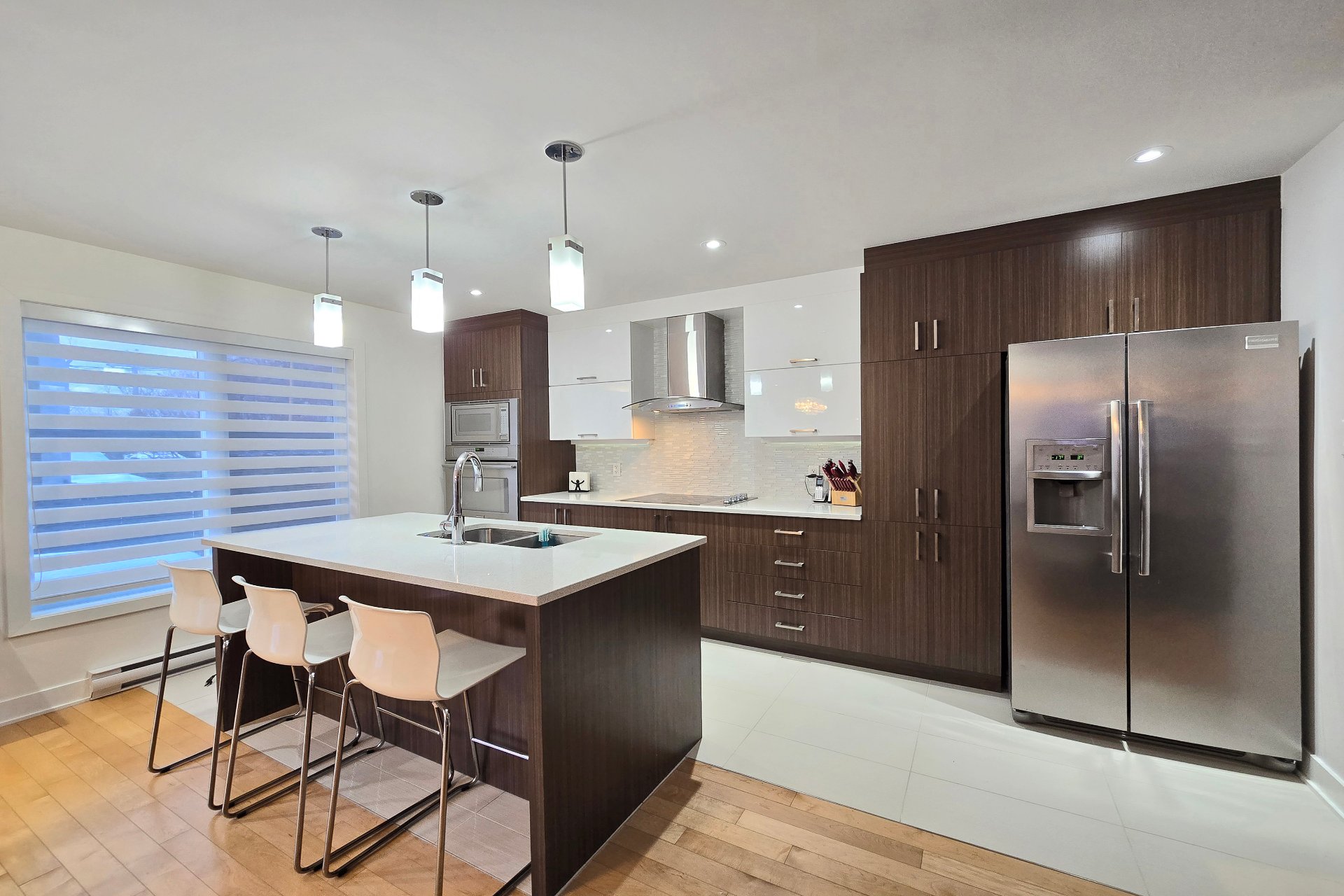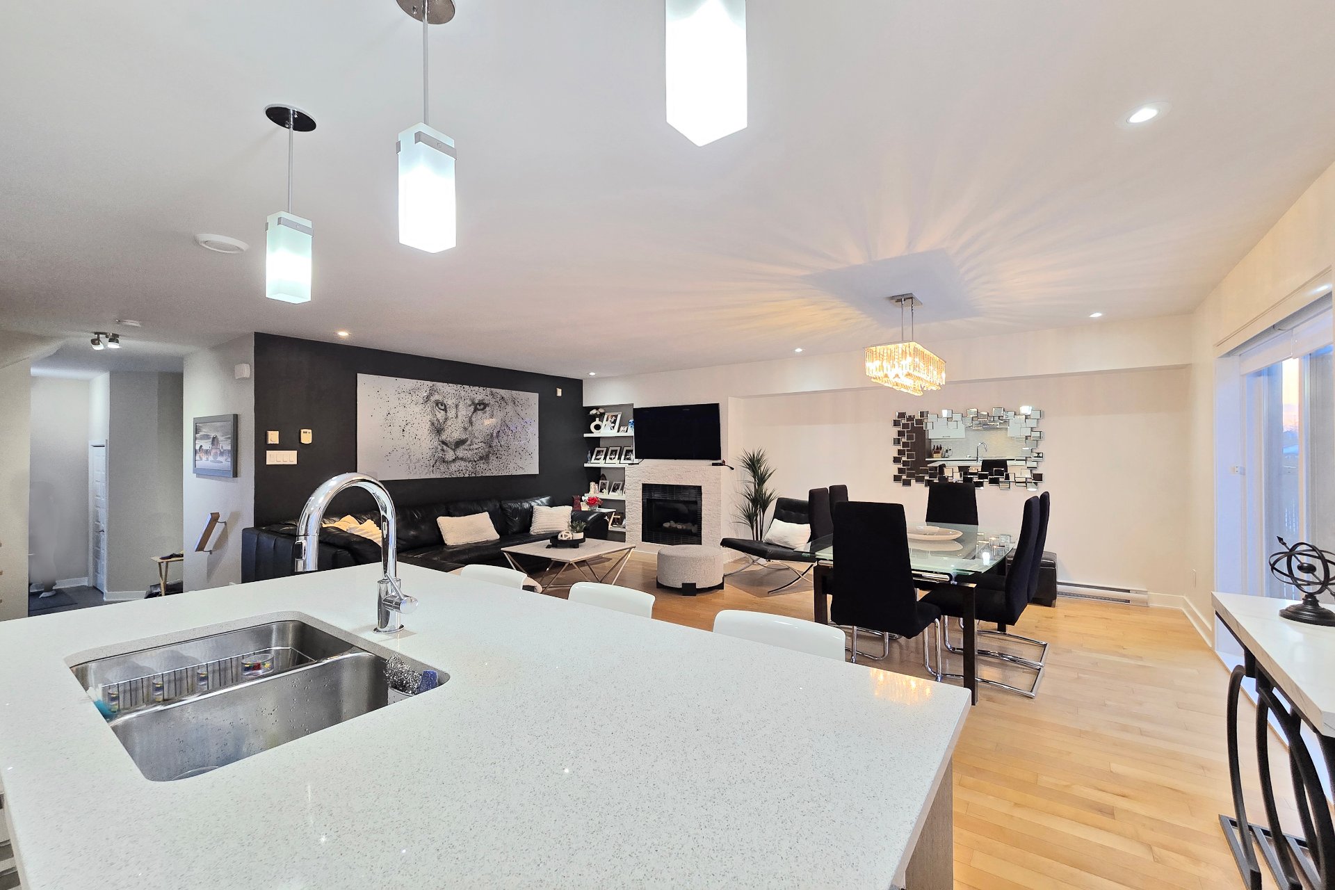 Magnifique unité de coin de style maison de ville (2013) située dans un secteur recherché de Chomedey. Elle offre 3 chambres à l'étage, dont une chambre principale avec walk-in. Cuisine avec comptoirs de quartz, double évier, îlot de cuisine et électroménagers encastrés inclus. Planchers de bois et foyer au gaz au salon. Piscine creusée chauffée partagée et possibilité d'acquérir les meubles de patio. Occupation flexible avec entente. Emplacement idéal près des autoroutes 13, 15 et 440, du parc Joachim-Du Bellay, des écoles, commerces, transports et services. Quartier familial et paisible très en demande. Ne manquez pas la chance!